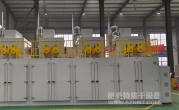 4、加熱方式:采用燃氣加熱盤管+熱風循環。采用全循環換氣方式,設備兩側安裝大風量離心式高溫風機,進行熱風循環,爐內兩側面出風孔板出風,右部回風使設備在整個加熱過程中具有良好的溫度均勻性。